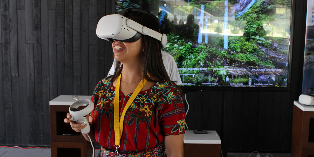 Una de las pantallas se aprovechó para integrar una llamativa experiencia de realidad virtual con visores de VR Oculus Quest de Meta.